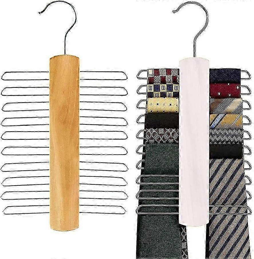 2-Piece Wooden Tie and Scarf Hanger Set - 23cm Organiser for Belts, Ties, and Accessories