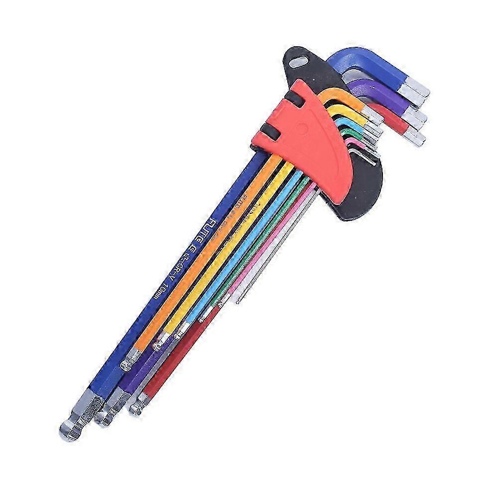 9-Piece Hex Key Set with Long Arm Ball Ends, Folding Design and Notched Tips for Easy Access in Tight Spaces and DIY Tasks