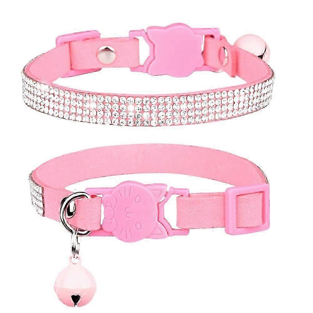 2 Pack Adjustable Pink Diamond Cat Collars with Bell for Safe and Stylish Kitten Accessories in the UK