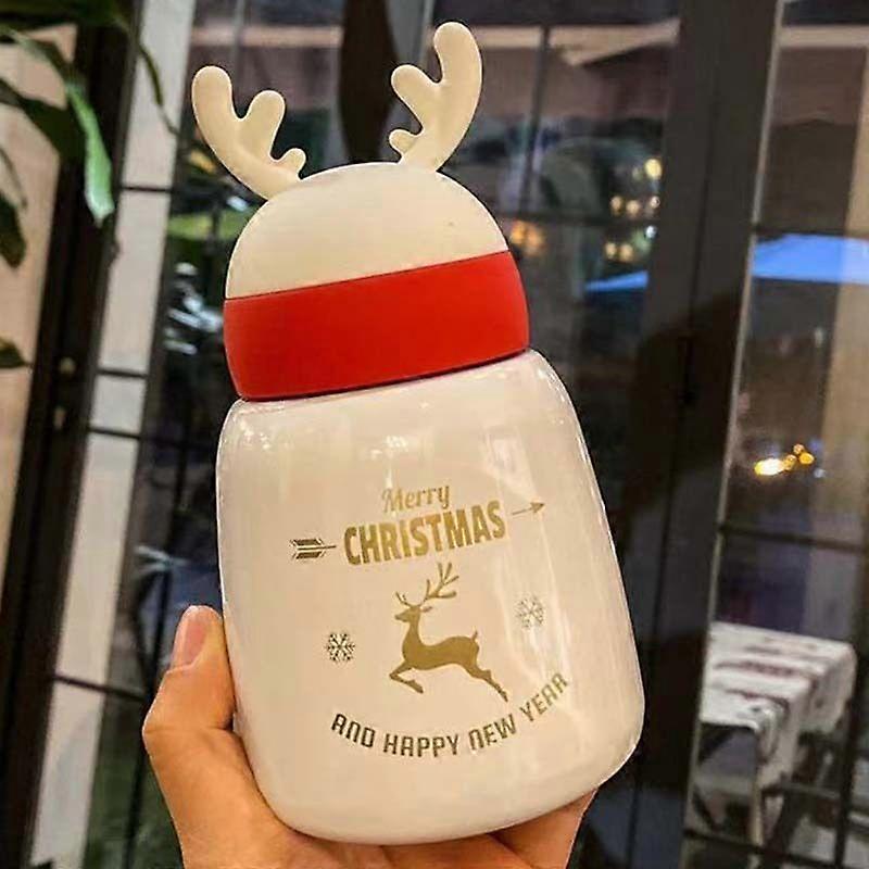 Christmas Tumbler with Reindeer Antler Lid Insulated Travel Mug Portable Water Bottle Outdoor