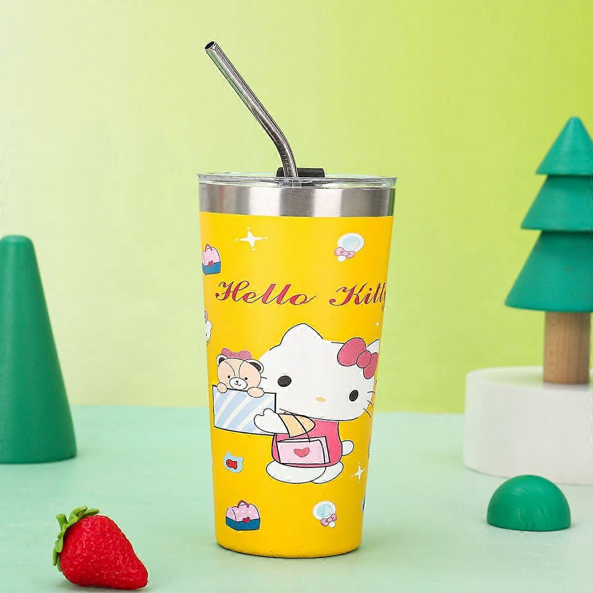 Christmas Cartoon Pattern Straw Tumbler 304 Stainless Steel Insulated Coffee Cup 500ml Large Capacity Gift Water Bottle