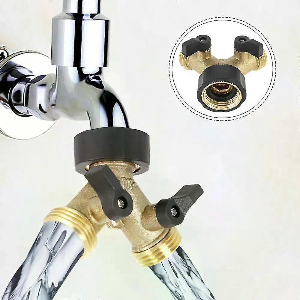 Hose Splitter Brass 2 Way Garden Hose Connector 3/4 Thread Y Shape Hose Spigot Adapter Heavy Duty Water Hose Splitter with 7