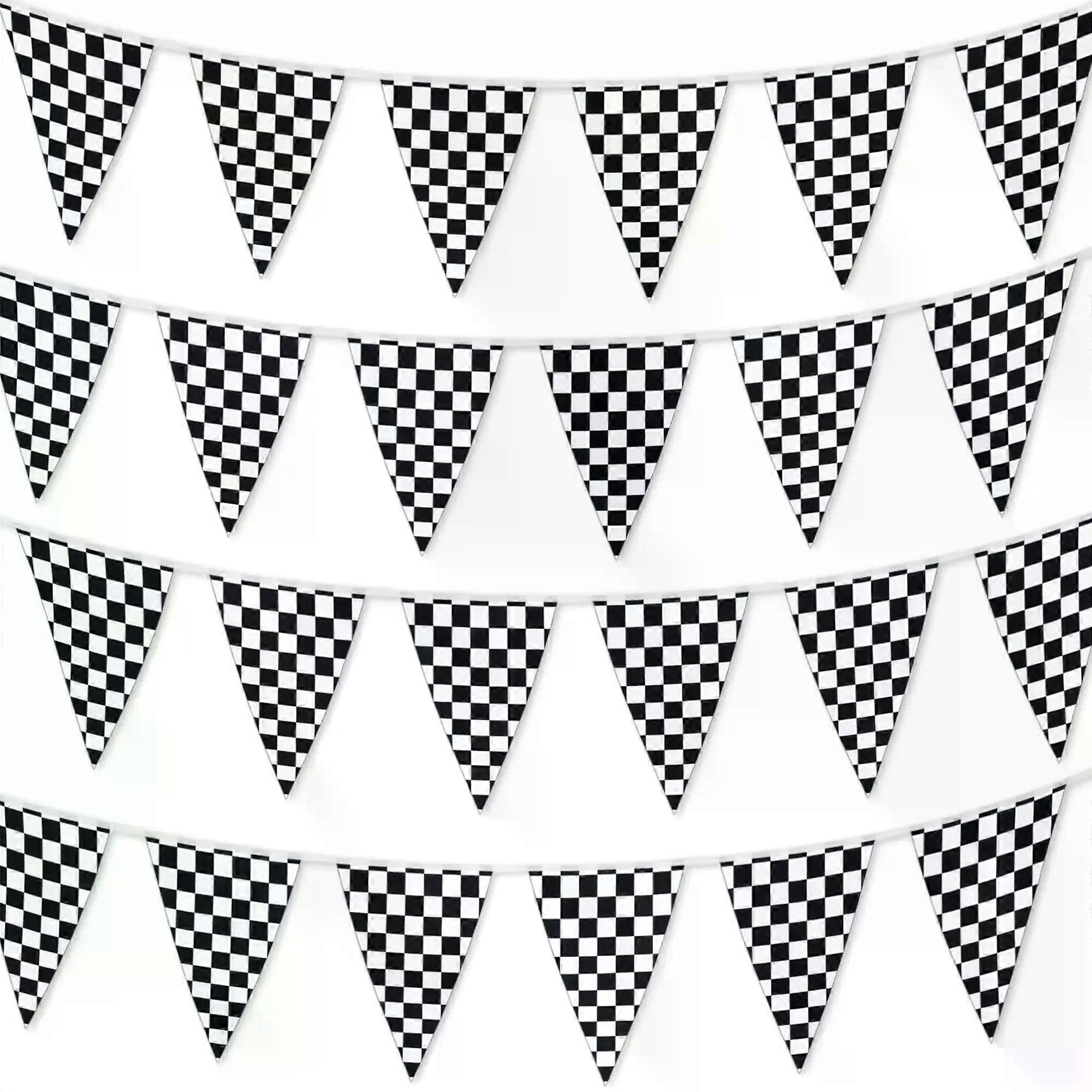 Racing Car Party Triangle Flag Banner Checkered Flag Pennant Banner for Racing Car Birthday Party Decoration Backdrop Decoration