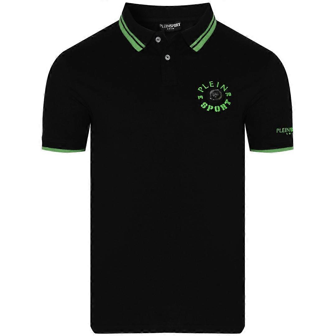Plein Sport Twin Tipped Collar Tiger Design On Back Black Polo Shirt