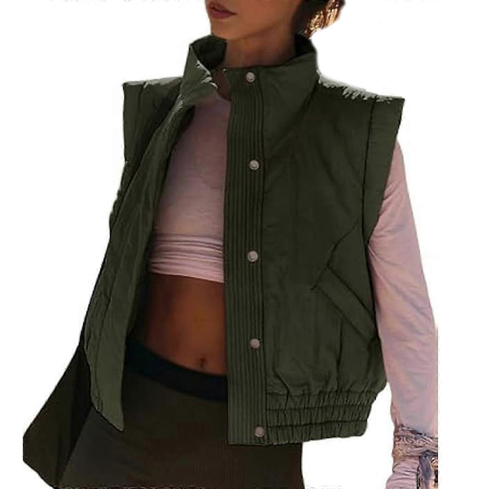 Fashionable Quilted Vest with Stand Collar Sleeveless Padded Jackets Waistcoat Button Down Cropped Gilet Coat for Women fluorescent green L