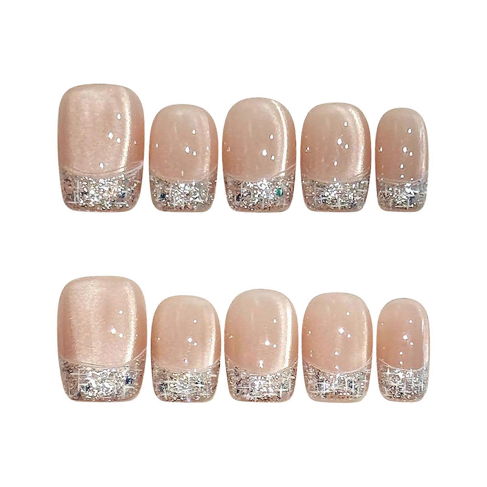 10Pcs French Crushed Diamond Cat Eye Press On Nails Short Square Fake Nails with