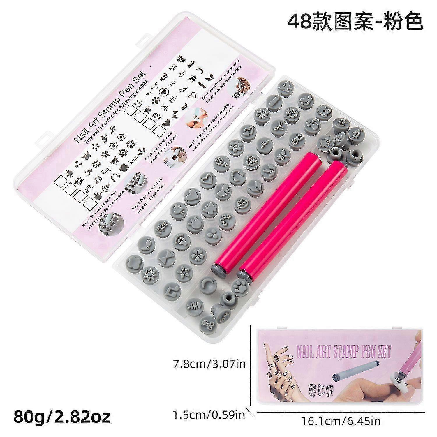 48 Pcs Nail Art Stamp Pens Set with 48 Floral Design Plates - Easy to Use Fingernail Stamper Kit for DIY Manicure, Professional Salon & Home Nail Art