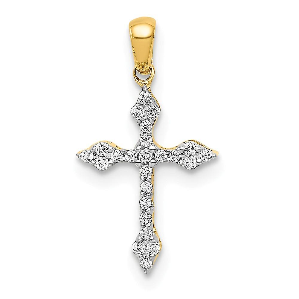 14k Solid Yellow Gold Diamond Religious Faith Cross Pendant Necklace 17x9mm Wide Pendant for Women