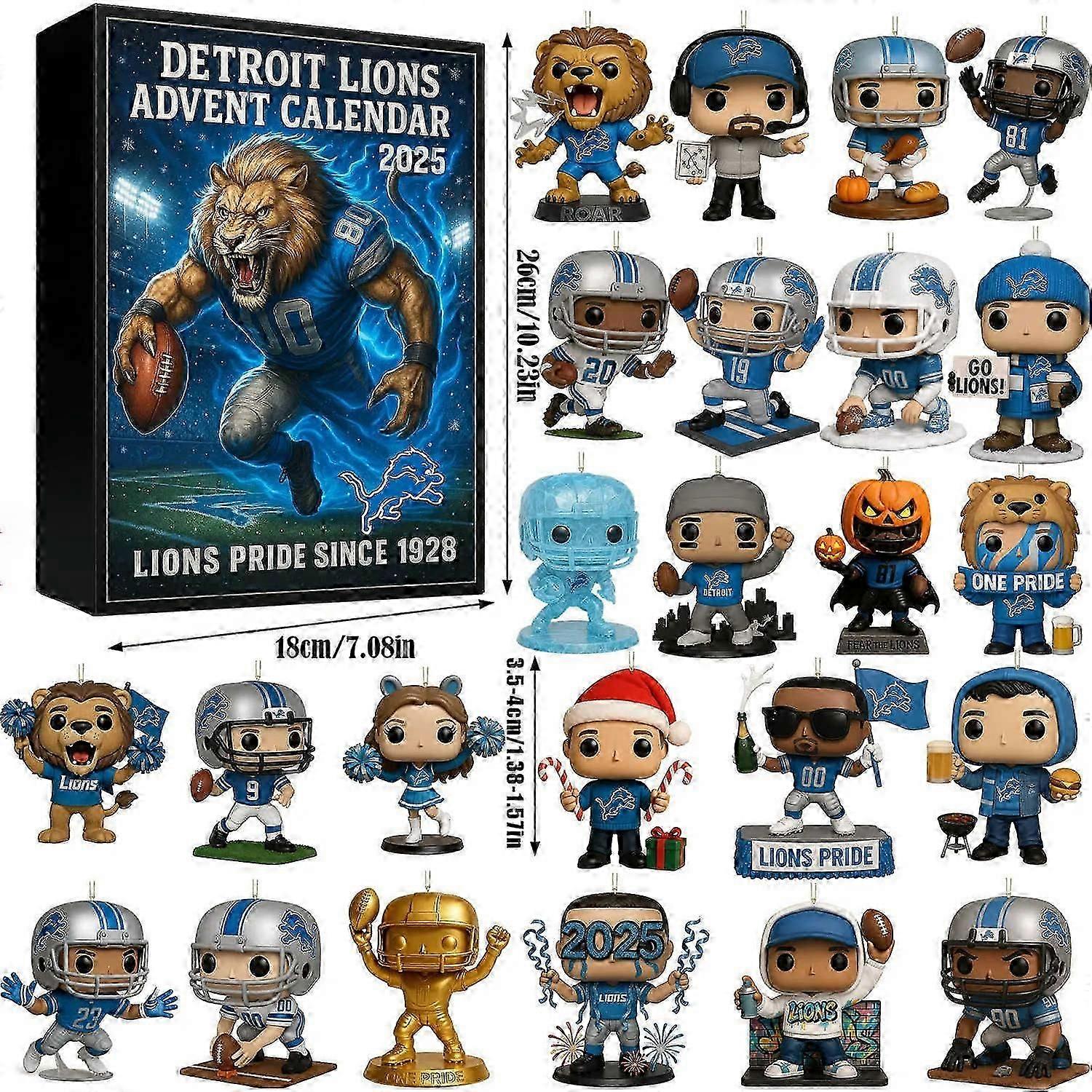 Detroit Lions 2025 Advent Holiday Blind Box with Team Themed Acrylic Tree Pendants