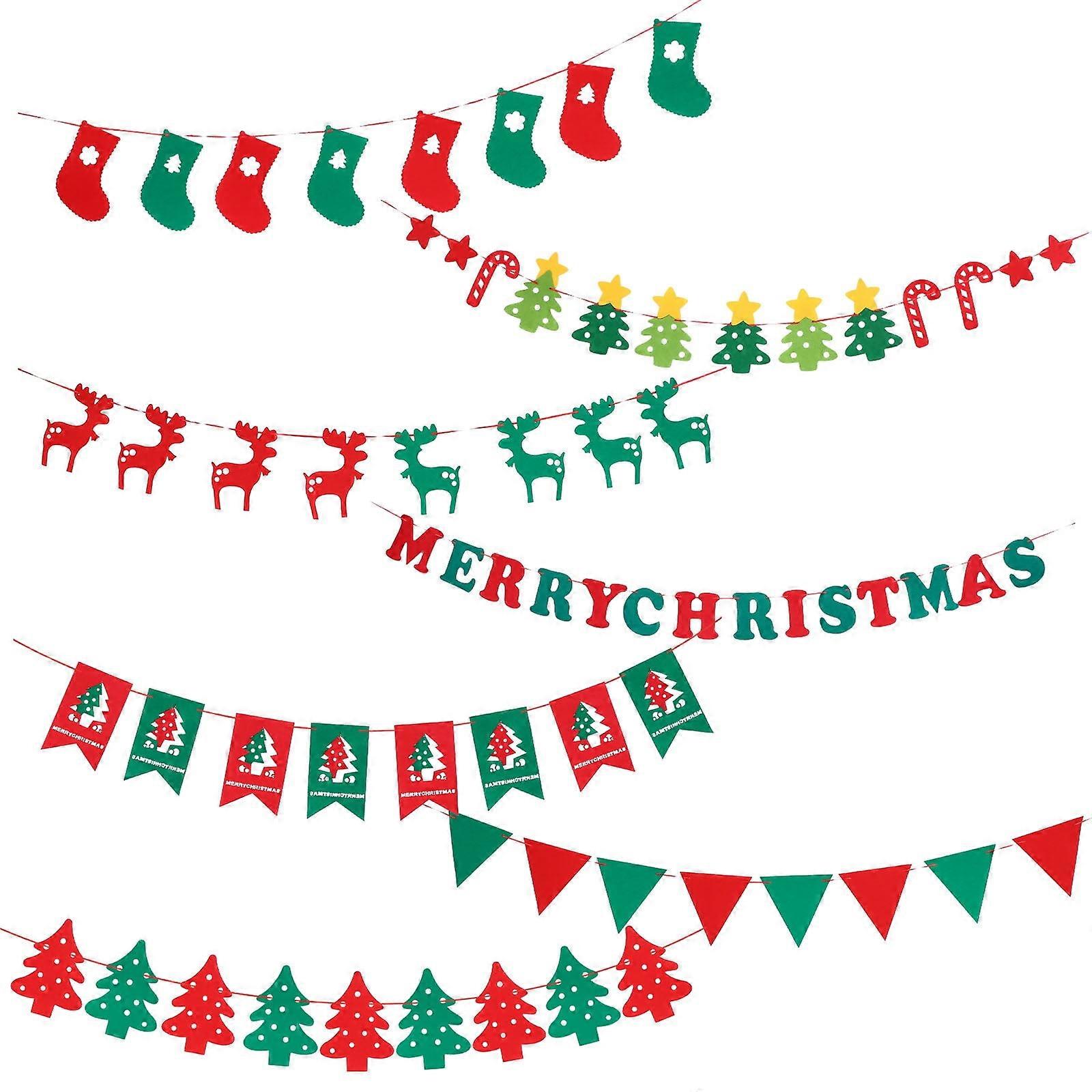 Merry Christmas Banner Decoration Flags for Party Photo Props Hanging Felt Cloth Assorted Color 7 Pcs