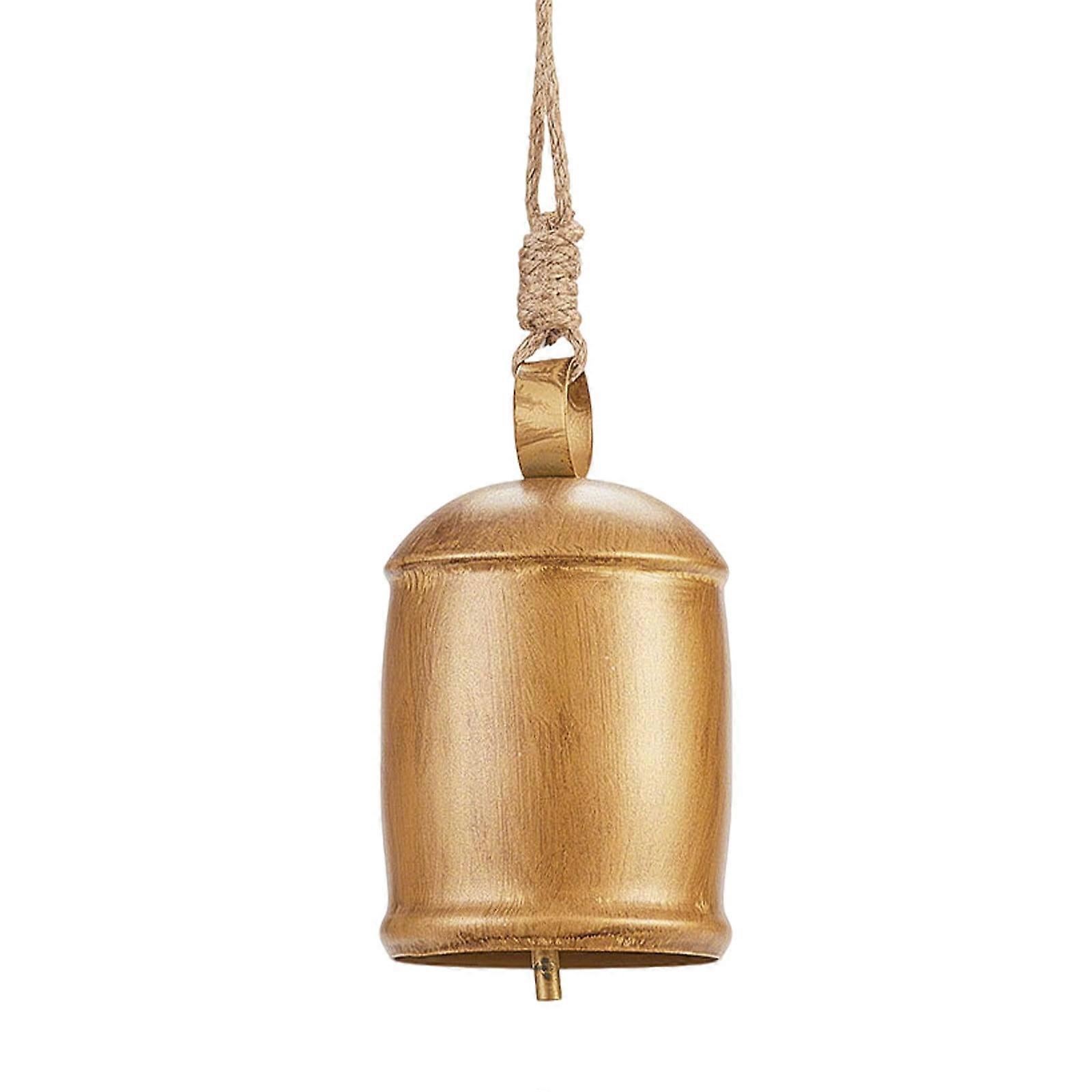 Brass Cow Bell Decor, Shabby Chic Metal Hanging Ornament, Farmhouse Christmas Accent, Rustic Rope Bells, Country Holiday Charm