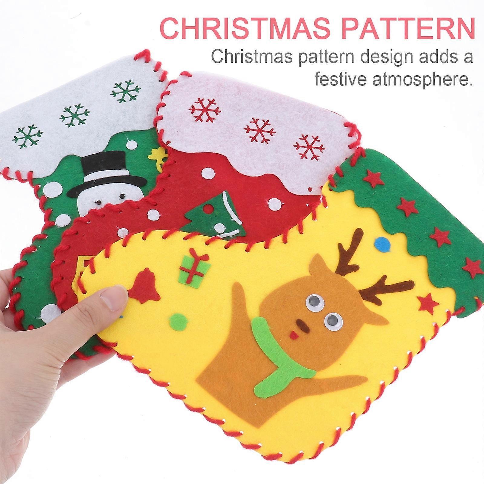 4PCS Kids Stocking Christmas Stocking Making Kit Cloth Hand-made Activities for Children