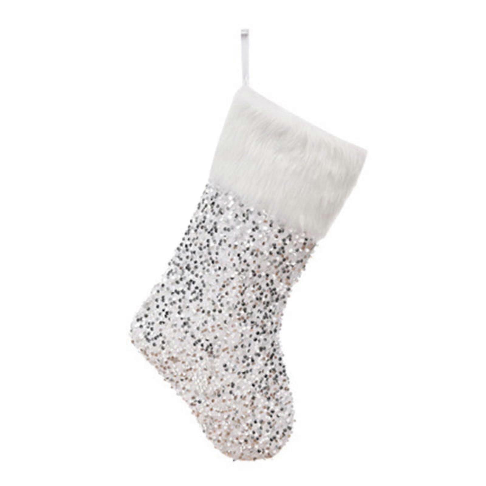 (pc) Sequined large Christmas socks, children's candy gift bag, Christmas decorations-silver