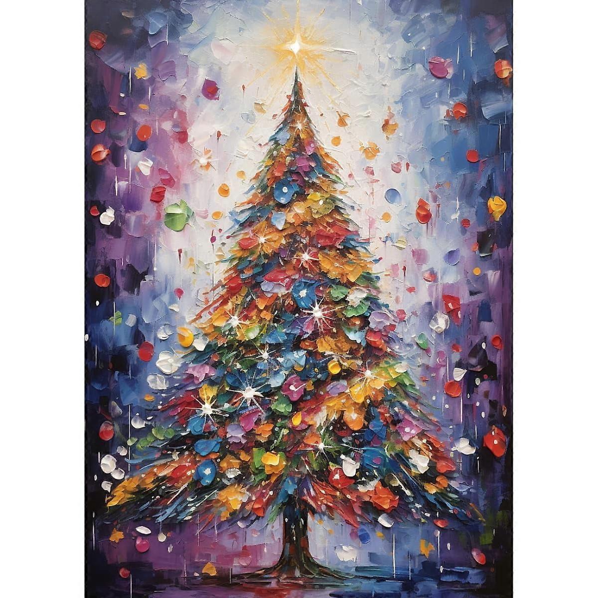 Colorful Tree Christmas Decoration DIY 5D Diamond Art Paint with Full Drill Round Diamond Gems Painting by Number Kits for Adults Art Craft Home Wall