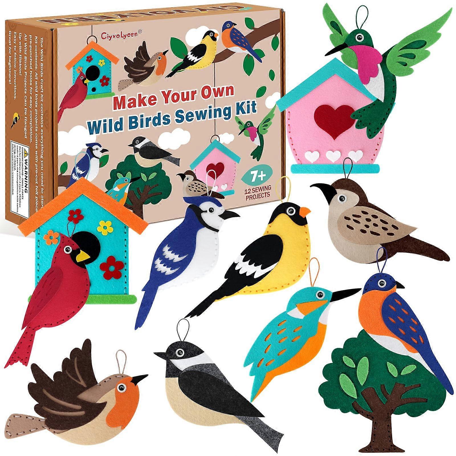 <ul> <li>WILD BIRDS SEWING KIT FOR KIDS - The package includes 12 felt bird sewing projects and self-adhesive accessories, including embroidery thread, plastic sewing needles, safe scissors, cotton stuffing, and easy-to-follow instructions.</li> <li>GREAT FOR BEGINNERS - Each wild bird projects come with pre-cut felt pieces, pre-punched holes, and instructions for easy completion without the aid of glue. Family and friends can also share the fun and work together to complete the handicrafts.</li> <li>GREAT GIFT - Perfect gift for children, or craft parties. It helps children to improve their concentration and hands-on ability! It will be can be a perfect gift for a kid's birthday party, Christmas, or any occasion.</li> <li>ADORABLE DECOR - This sewing kit comes with nine little birds, one tree, and two birdhouses. when you're done with these DIY sewing projects, you can decorate the room, hang them on the tree of the nursery room, or as Christmas decorations, These can also be used as learning toys for children.</li> </ul>