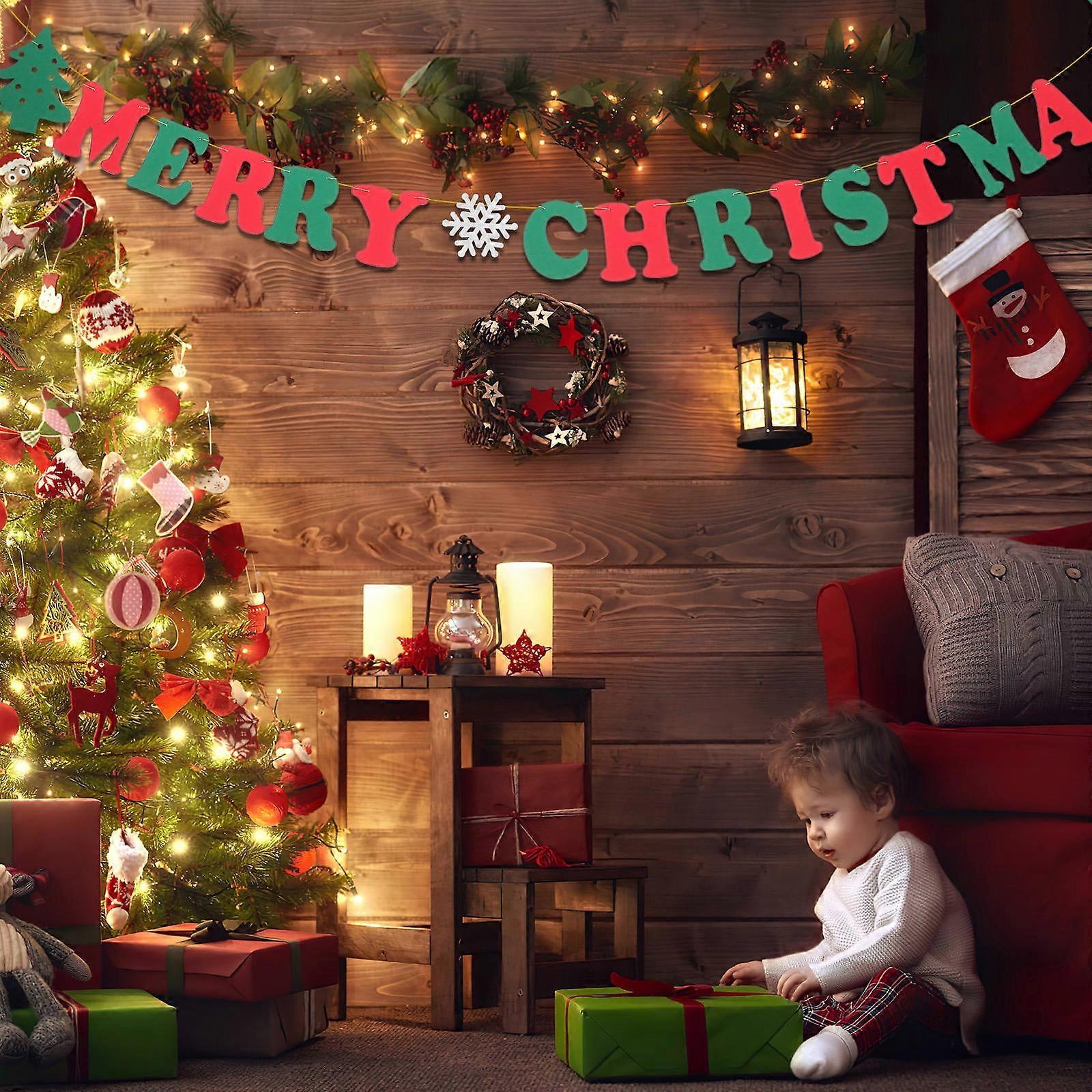Merry Christmas Banner Decorations Red 5Pcs 6x6in