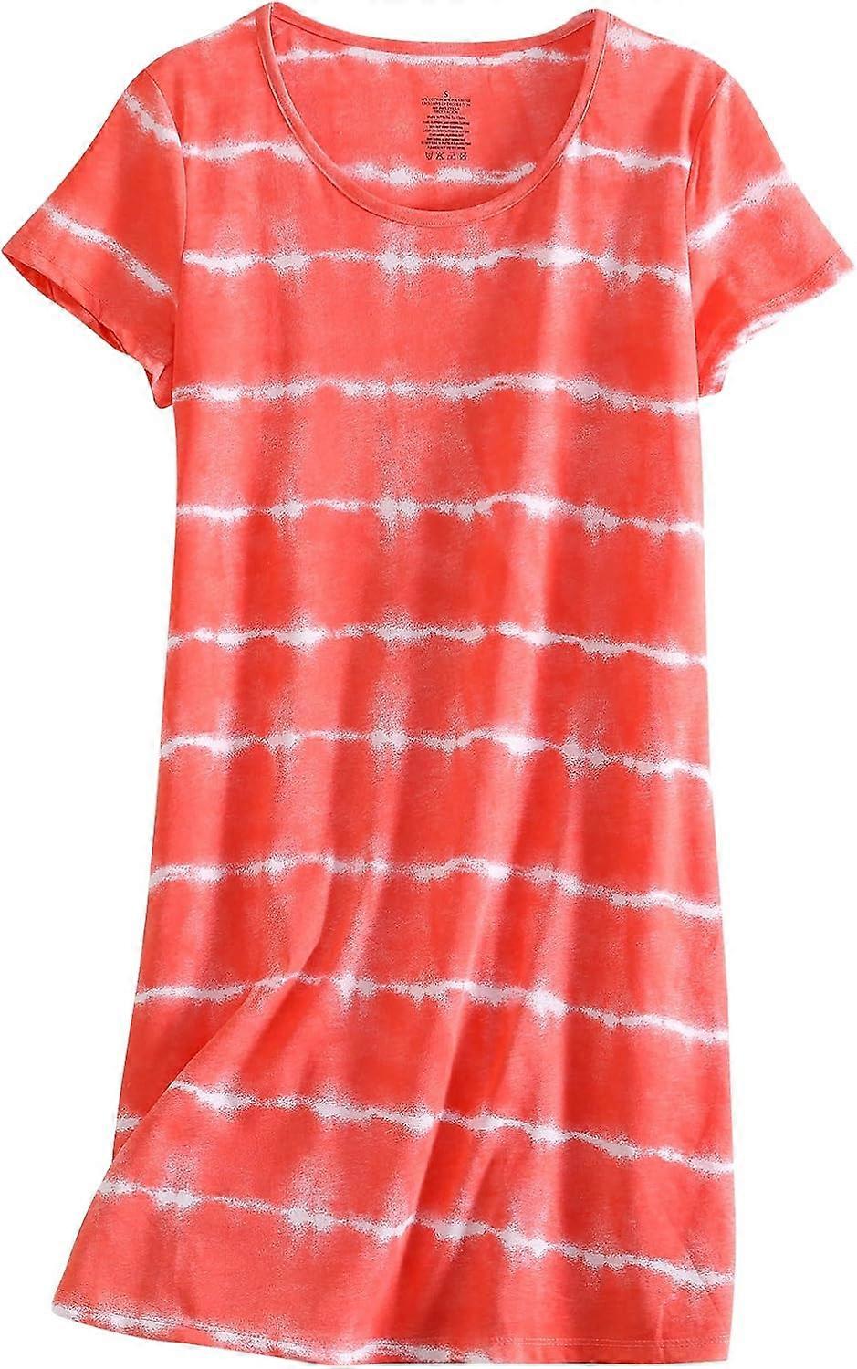 Women's Cotton Nightgown Sleepwear Short Sleeves Shirt Casual Print Sleepdress,Orange Wave