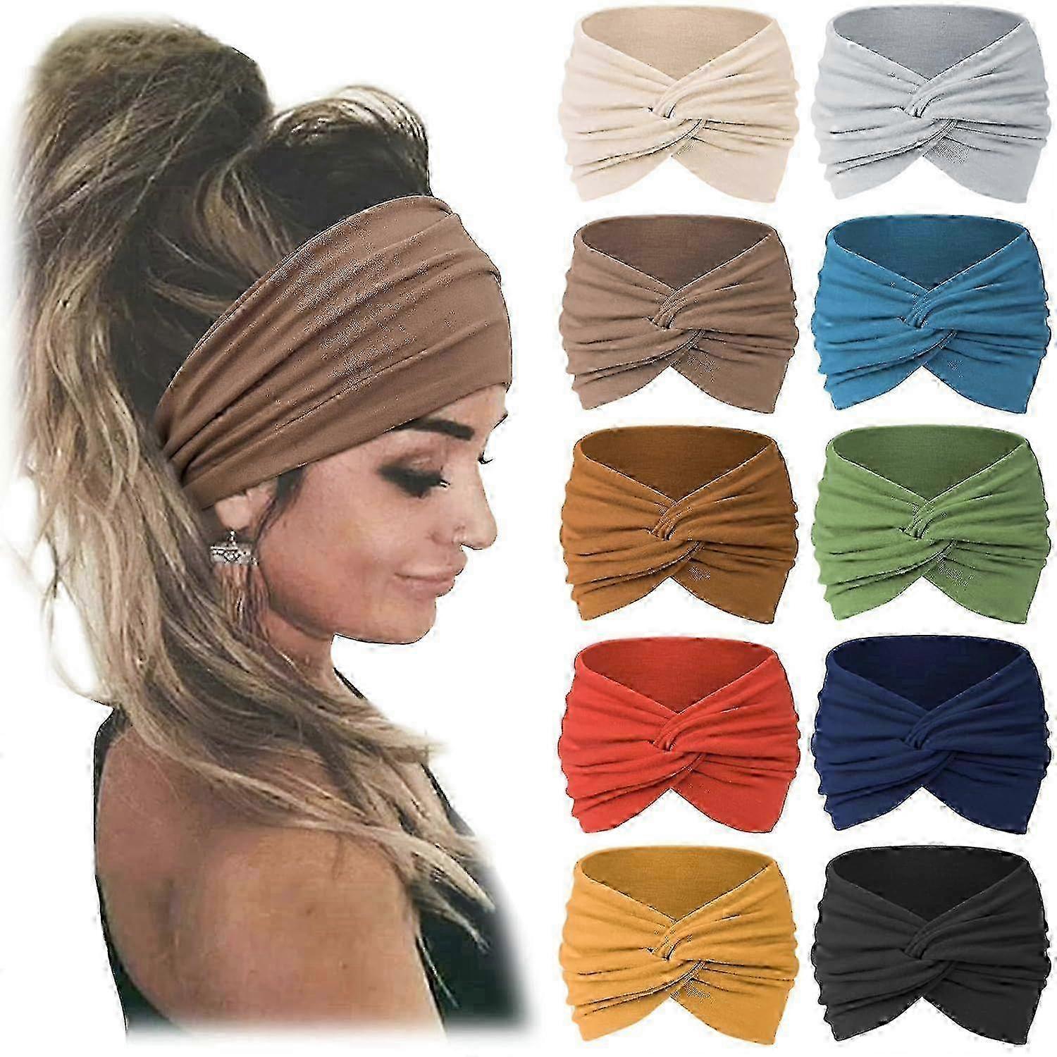10 PCS African Style Women's Wide Headbands - Extra Turban Head Bands for Ladies