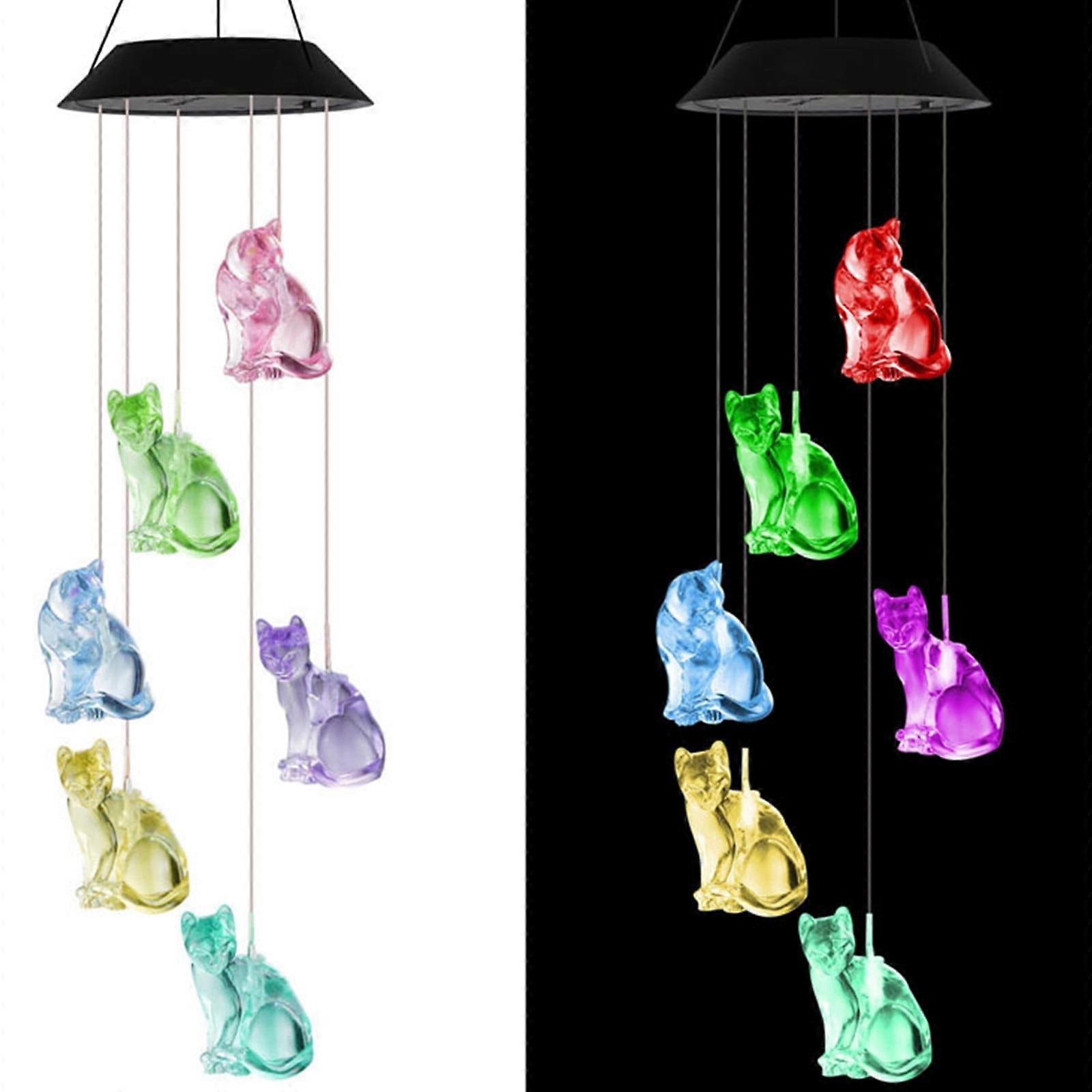 Harpi Cute Cat Solar Wind Chimes, Color Changing Waterproof LED Lights for Outside, Home, Garden, Party, Christmas & Mother's Day Gifts