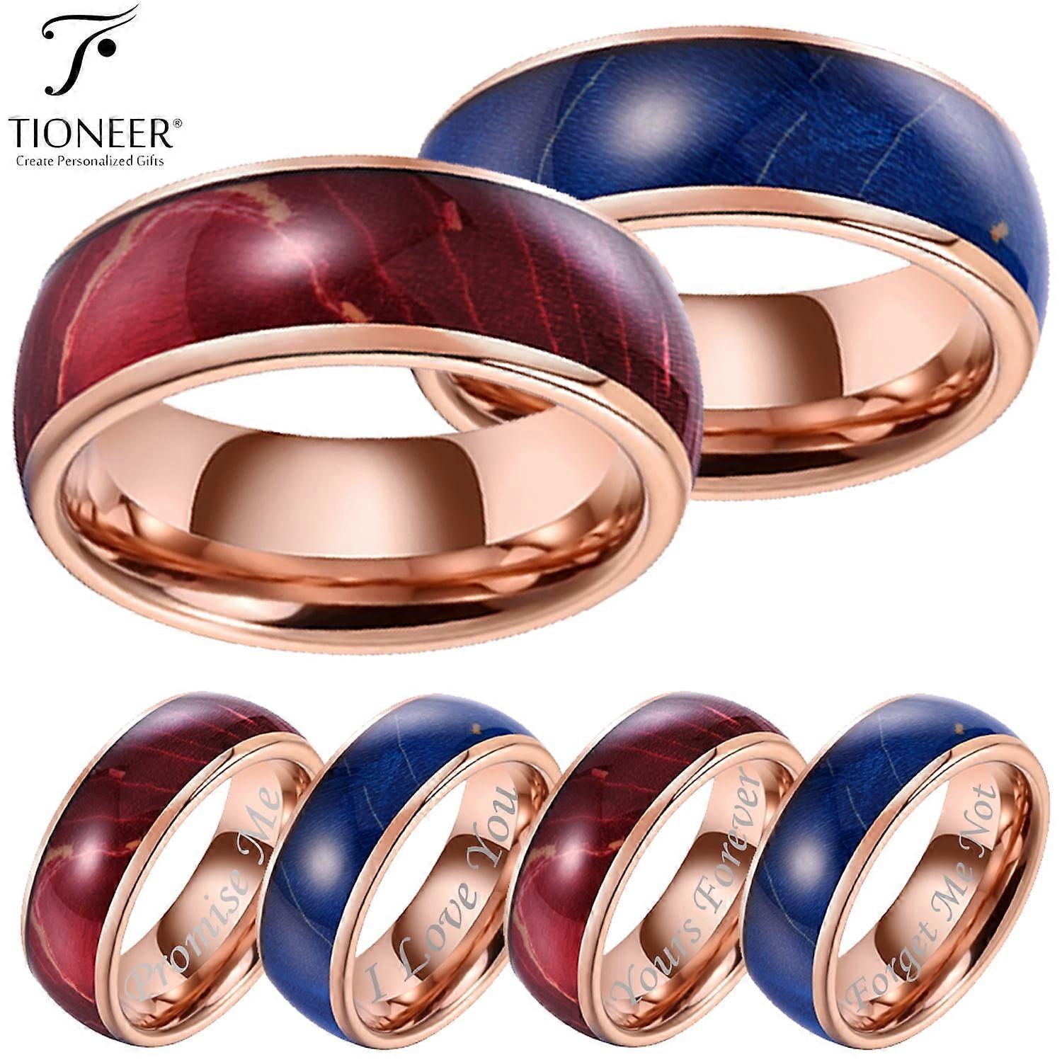 Tungsten Carbide Blue / Red Cured Wood Design Rose Gold Wedding Band Ring Mens Womens 8MM w/ FREE Engraving