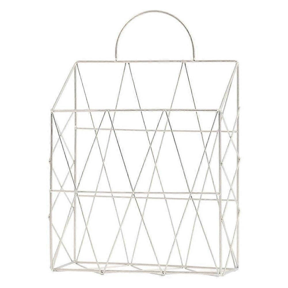 LEEYNEER Magazine Holder Hanging Wall-mounted Newspaper Book File Organizer Basket Iron Shelf Storage Container Display Stand (White)
