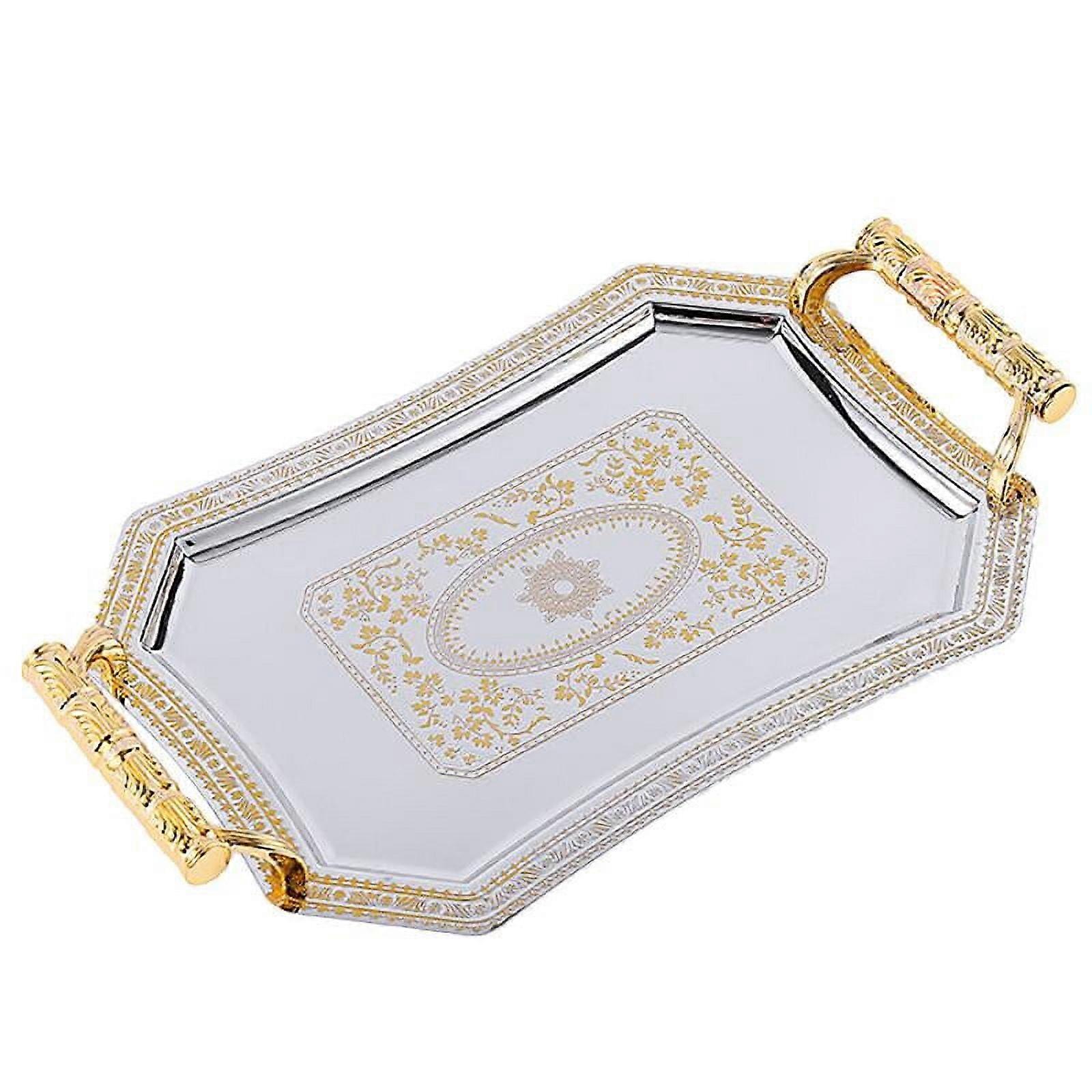 Features: brand new and high quality Premium material: Made of stainless steel with anti-rust, anti-corrosion, strong and durable. Delicate pattern: Fine pattern carving design and exquisite workmanship, comfortable and elegant, provide you the atmosphere of artistic life. Easy to care: Bright bottom, round and smooth edges, does not hurt your hands and easy to clean. Wide use: Designed with handle for easy to take and move, widely used for storing cakes, snacks, bread, tea sets, jewelry, cosmetics, bath supplies, sundries and so on. Suitable scenes: Suitable for home, restaurant, hotel, restaurant, outdoor barbecue, western food, party and more Specifications: Material: Stainless Steel Optional sizes: S/for M/L S: approx.28x20cm/11.02x8.78in M: approx.36x25cm/14.17x9.84in L: approx.43.5x30cm/17.13x11.81in Optional colors: Gold/Silver Quantity: 1Pc Note: Please allow 0-1cm error due to manual measurement. pls make sure you do not mind before you bid. Due to the difference between different monitors, the picture may not reflect the actual color of the item. Thank you! Package includes: 1xStorage Tray (other accessories demo in the picture is not included.) Premium material: Made of stainless steel with anti-rust, anti-corrosion, strong and durable. Delicate pattern: Fine pattern carving design and exquisite workmanship, comfortable and elegant, provide you the atmosphere of artistic life. Easy to care: Bright bottom, round and smooth edges, does not hurt your hands and easy to clean. Wide use: Designed with handle for easy to take and move, widely used for storing cakes, snacks, bread, tea sets, jewelry, cosmetics, bath supplies, sundries and so on. Suitable scenes: Suitable for home, restaurant, hotel, restaurant, outdoor barbecue, western food, party and more