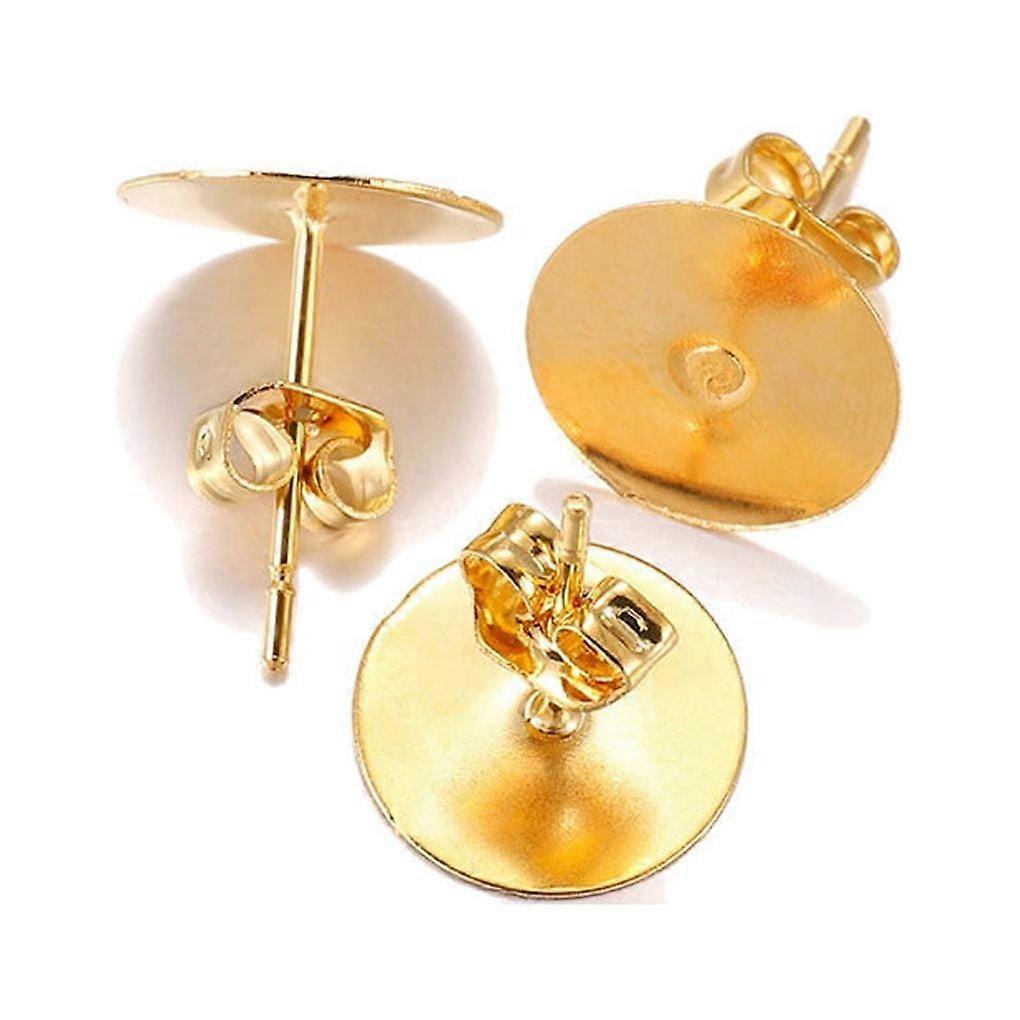 Tssuoun Earring Stud Base Multi Stainless Steel Accessories Personality Ear Pins Setting Decorations Wear DIY Jewelry Making Tool Gold 12mm