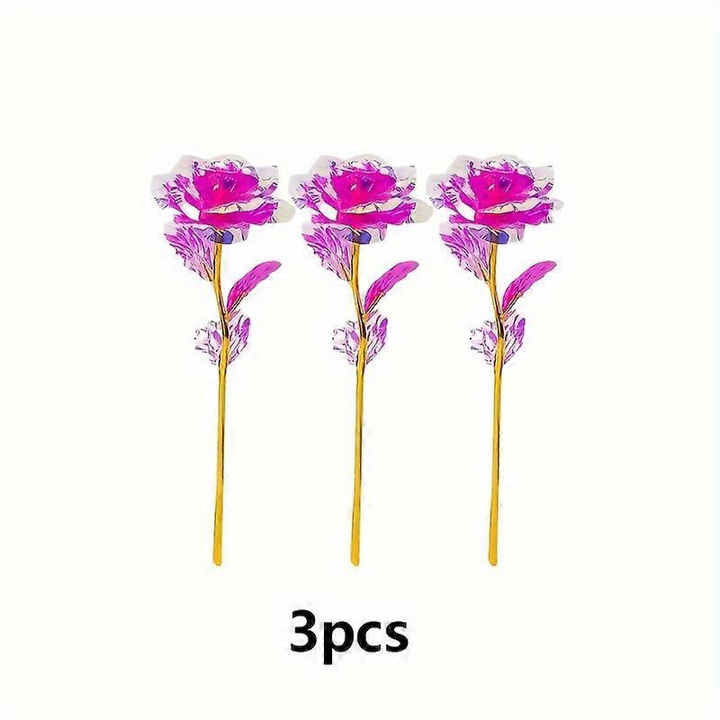 3pcs 24K Golden Foil Flower Simulation Rose, Compatible with Valentine's Day & Holiday Decor, Never Fade Gift for Mother, Wife, Girlfriend