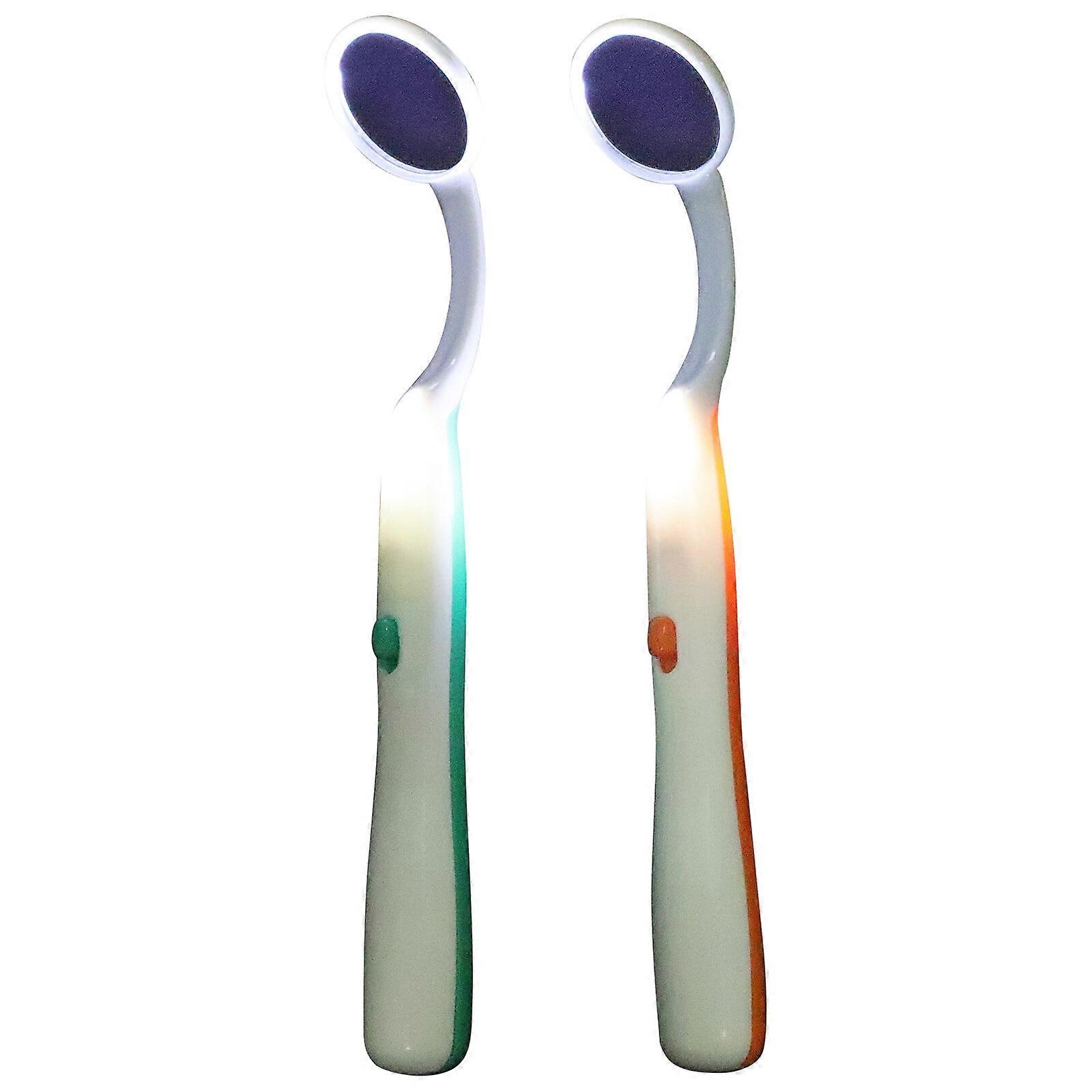 Hims 2PCS Oral Dental Mirror Mouth Tooth Inspection Mirror with Bright LED Light for Dental Care (Green and Orange)