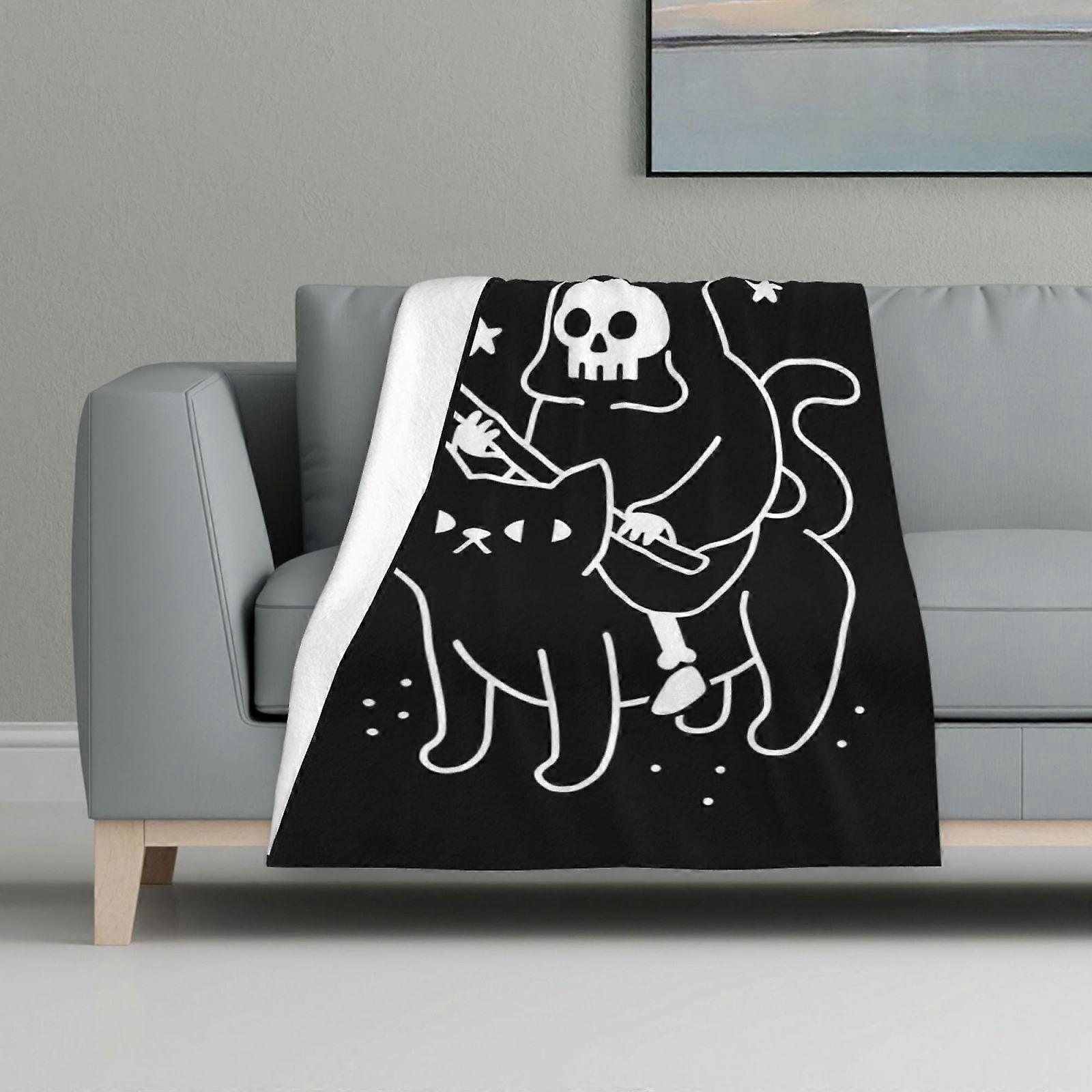 Blanket Multicolour Printed Blanket Super Soft Flannel Lightweight Fluffy Plush Bed Blanket Death Rides A Black Cat