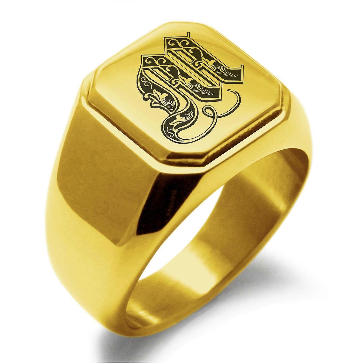 Stainless Steel Letter M Initial Royal Monogram Engraved Engraved Square Flat Top Biker Style Polished Signet Ring