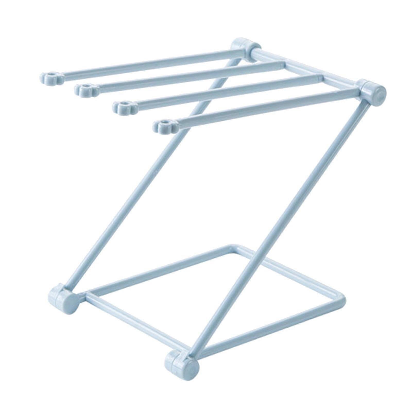 Countertop Drain Rack with 4 Arms, Folding Dishcloth Drying Holder, Vertical Kitchen Rag & Towel Storage Stand, Compatible with Small Spaces