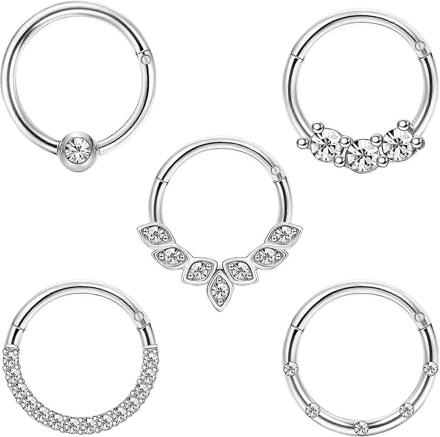 Jstyle Daith Earrings 16G Stainless Steel Cartilage Helix Tragus Nose Hoop Piercing Jewelry 8MM 10mm CZ Hinged Septum Rings