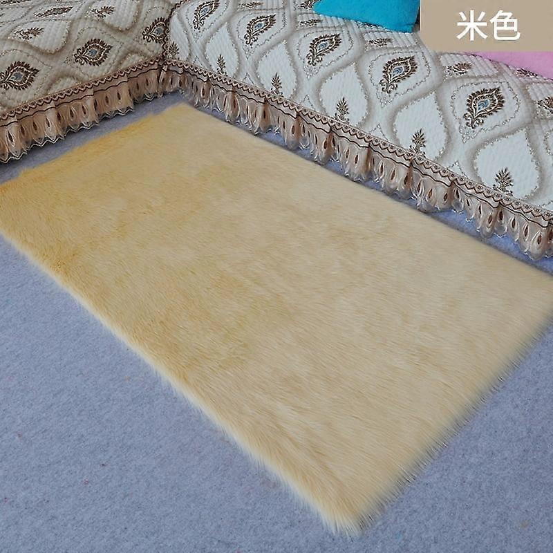 Nvzi-b Solid Color Plush Table Runner, Faux Sheepskin Shaggy Dresser Scarf, Non-Slip Desk Pad, Luxury False Fur Tablecloth - Beige 30x30cm