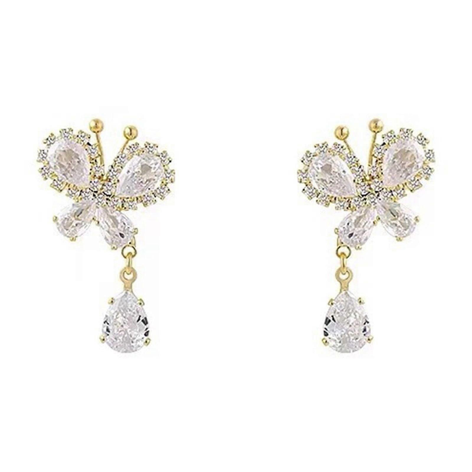 ZHENYANGli Butterfly Set Diamond Drop Earrings for Women Unique Temperament Earrings Vintage Earrings Design High Sense Earrings for Women