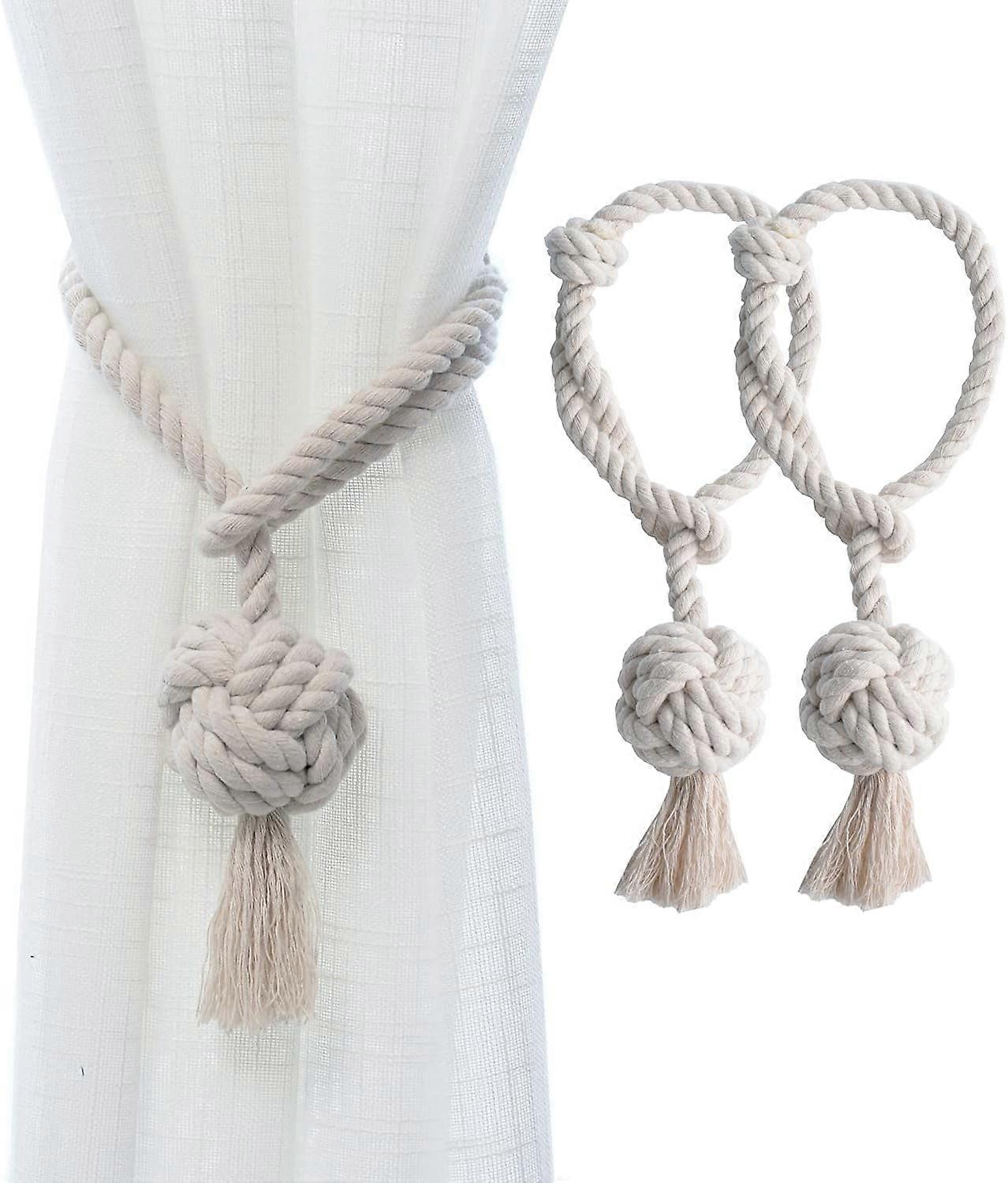 NANAHuang 4 Pack Rustic Curtain Tiebacks - Decorative Drapery Holdbacks, Hand Knitted Cotton Rope for Sheer & Blackout Curtains (Beige)