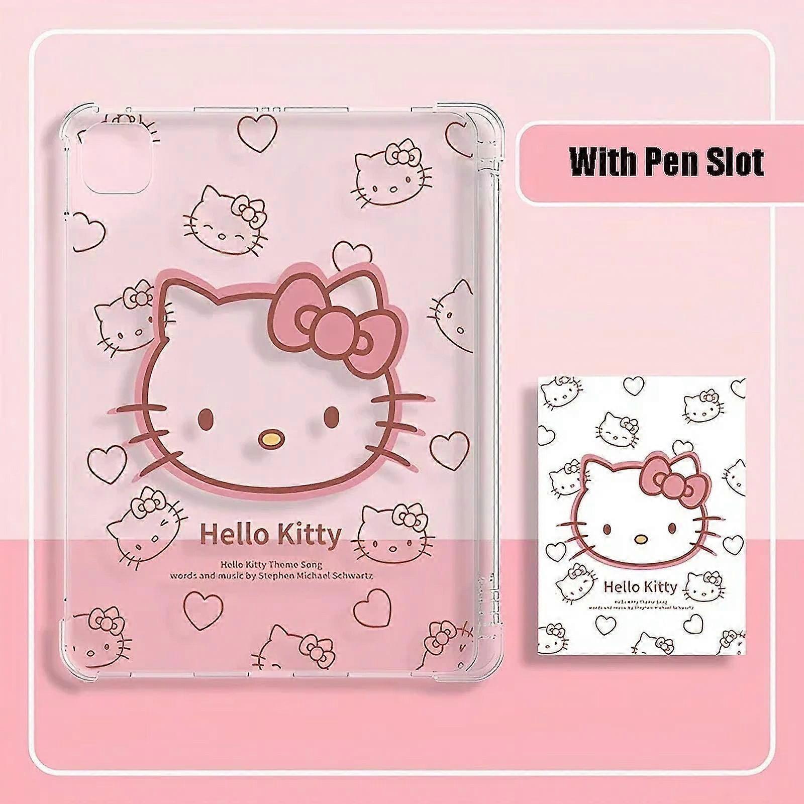 Kawaii Sanrio Hello Kitty Transparent Silicone Case compatible with iPad Pro 12.9, Air 1-5, Mini 4-6 - Cartoon Anti-Drop Design