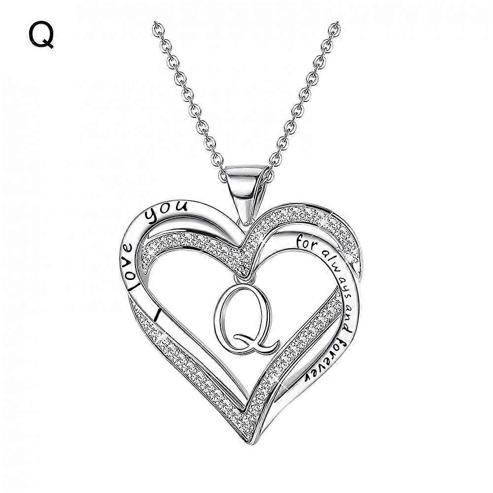 Jewelry Dainty Initial Silver Plated Alphabet Letter Charm Necklace Heart Pendant Necklace Letters Necklace Heart Necklace for Women Q