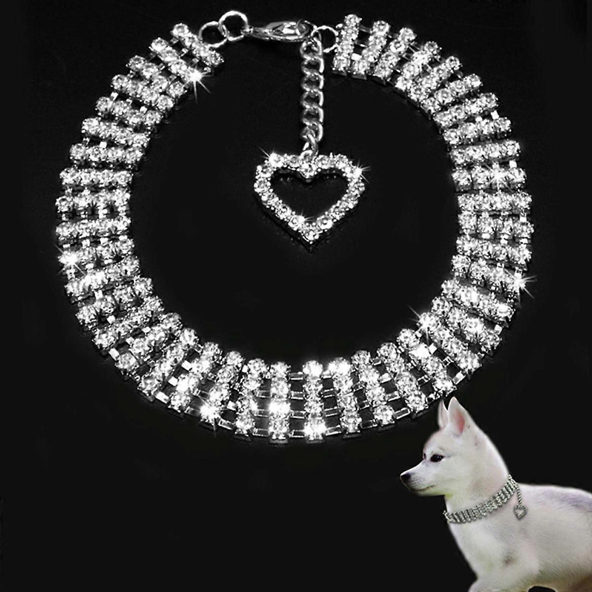Meidiya Rhinestone Dog Collar, 4 Row Bling Pet Necklace with Heart Pendant, Adjustable Crystal Collar for Small Dogs & Cats, Compatible with Meidiya