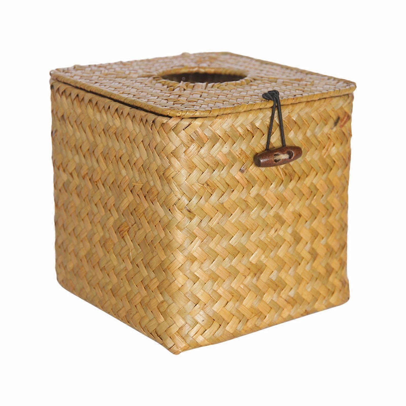 ionze Home Decor Square Woven Tissue Box Holder Decorative Napkin Holder Pumping Paper Case Dispenser Home Accessories (Yellow)