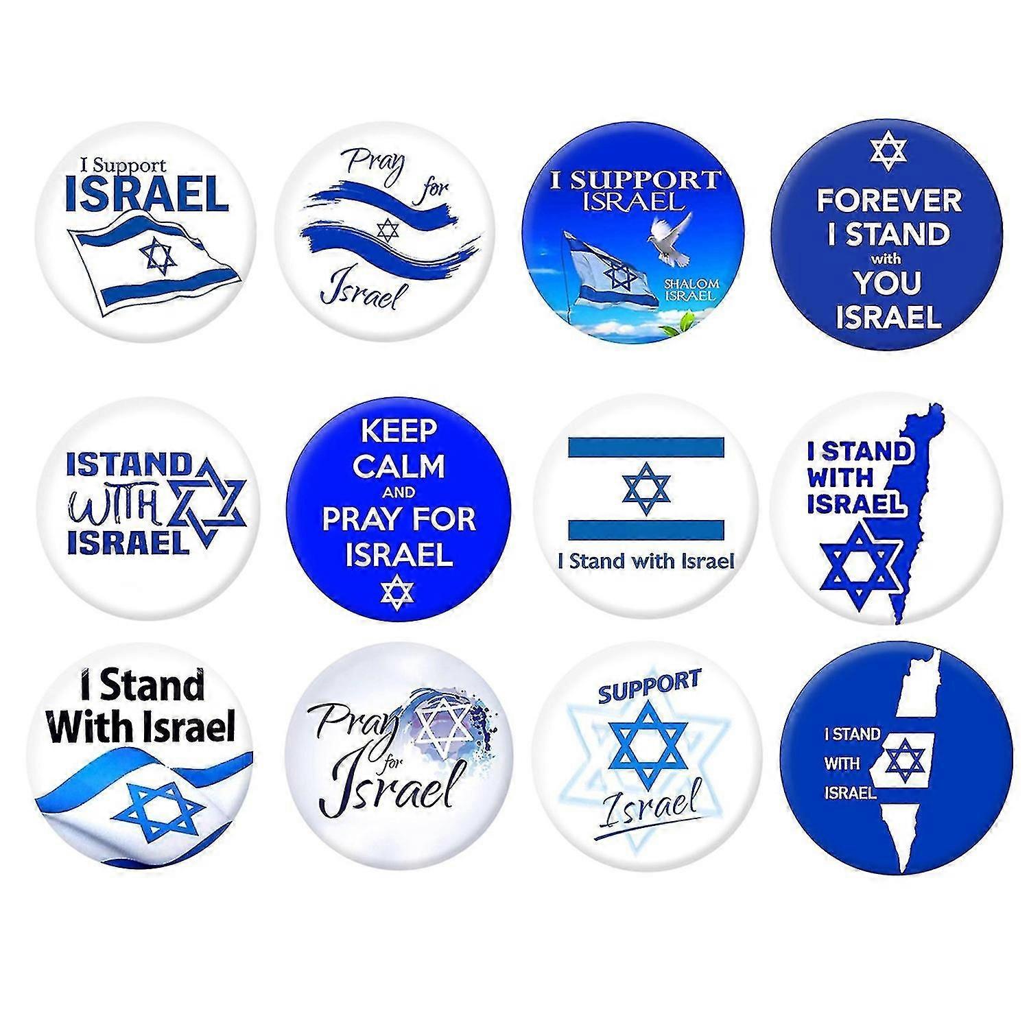 Israel Flag Brooch Pin, Metal Enamel Lapel Pin, Round Hat Shirt Pin