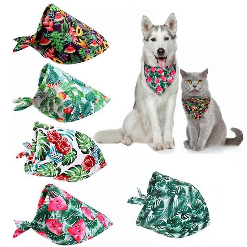 Tropical Dog Bandanas - Adjustable Breathable Polyester Pet Scarf with Cute Patterns, Cotton Collar & Compatible with Summer Styles