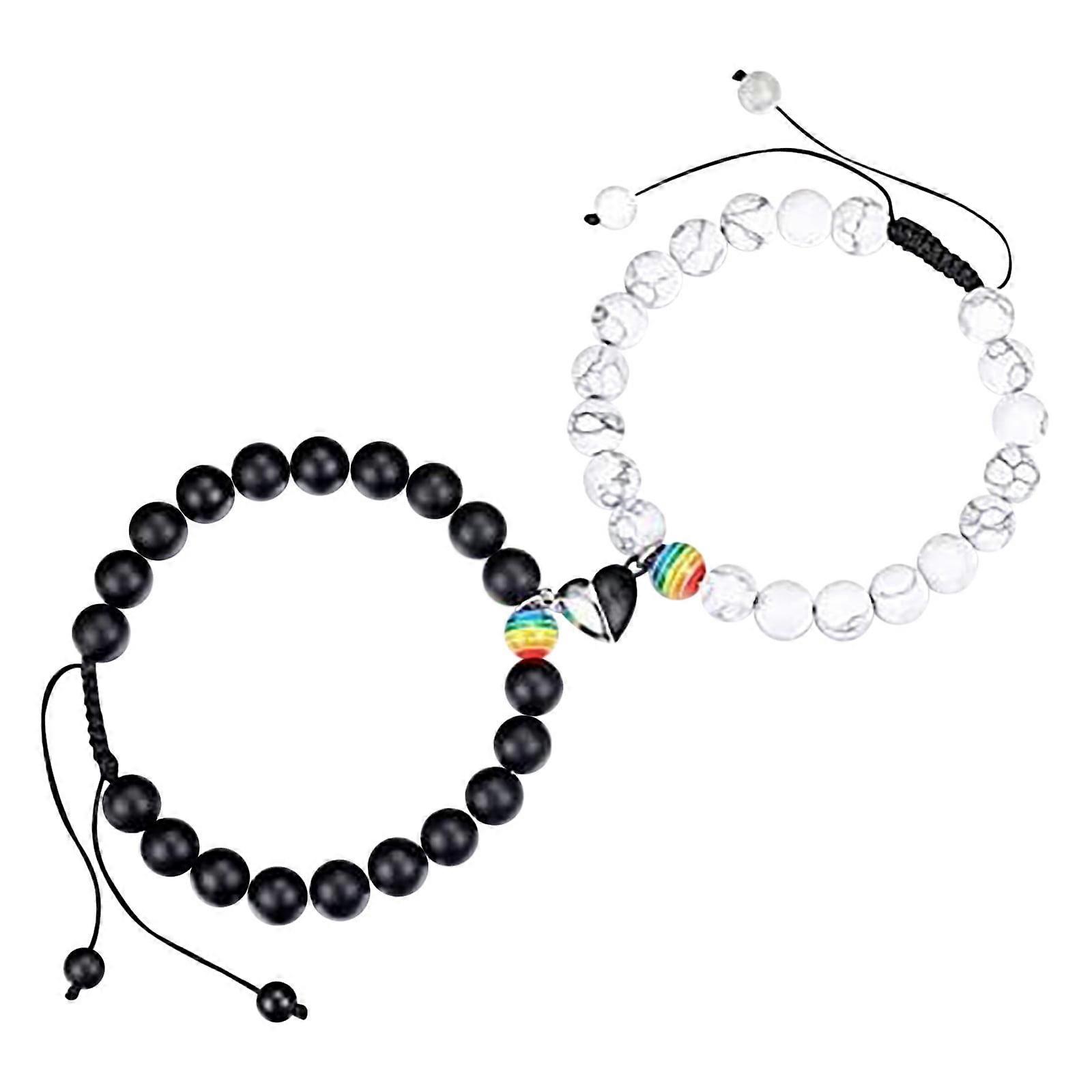 Hwuxmo Frosted White Turquoise Couple Bracelet Heart Shaped Magnet Absorbing Natural Stone Men's And Women's Bracelets Clearance D
