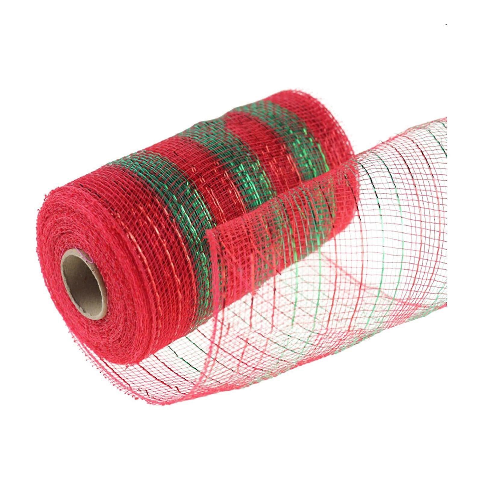 XunRui Gift Wrapping Paper with Poly Mesh Ribbon 6"x360ft, Metallic Foil in Gold Green Red, Compatible with Christmas Wreaths & Home Decor