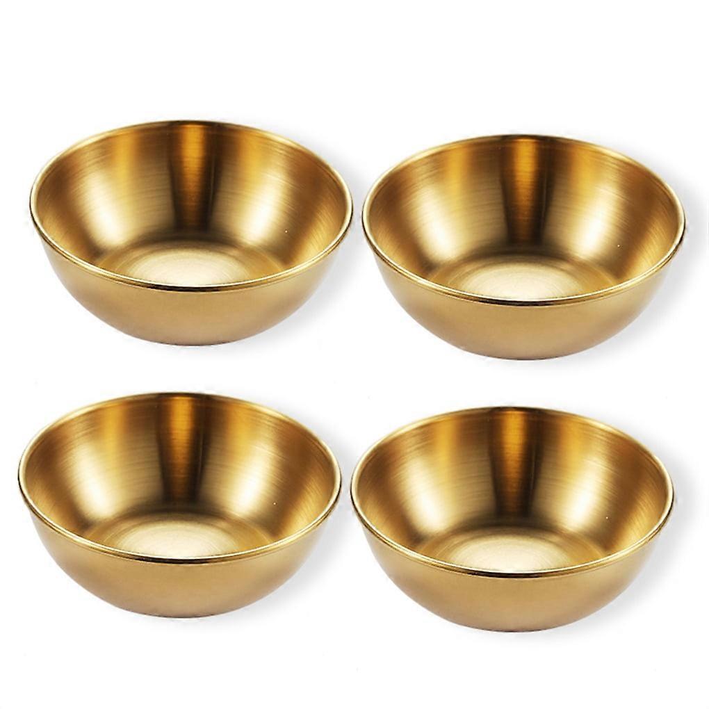 Tssuoun 4 Pieces Stainless Sauce Sushi Dishes Spice Vinegar Plates Dipping Bowls Household Tableware Dessert for Dining Hall Gold