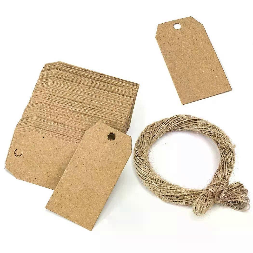 100 Pcs Kraft Paper Tags Brown Cardboard Cards With Strings Wedding Birthday Christmas Party Gifts Tag Cookie Packaging Supplies