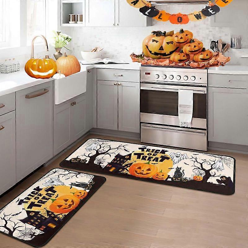 Halloween Pumpkin Doormat Holiday Decor Rug Kitchen Runner Mat Set Crystal Velvet Material