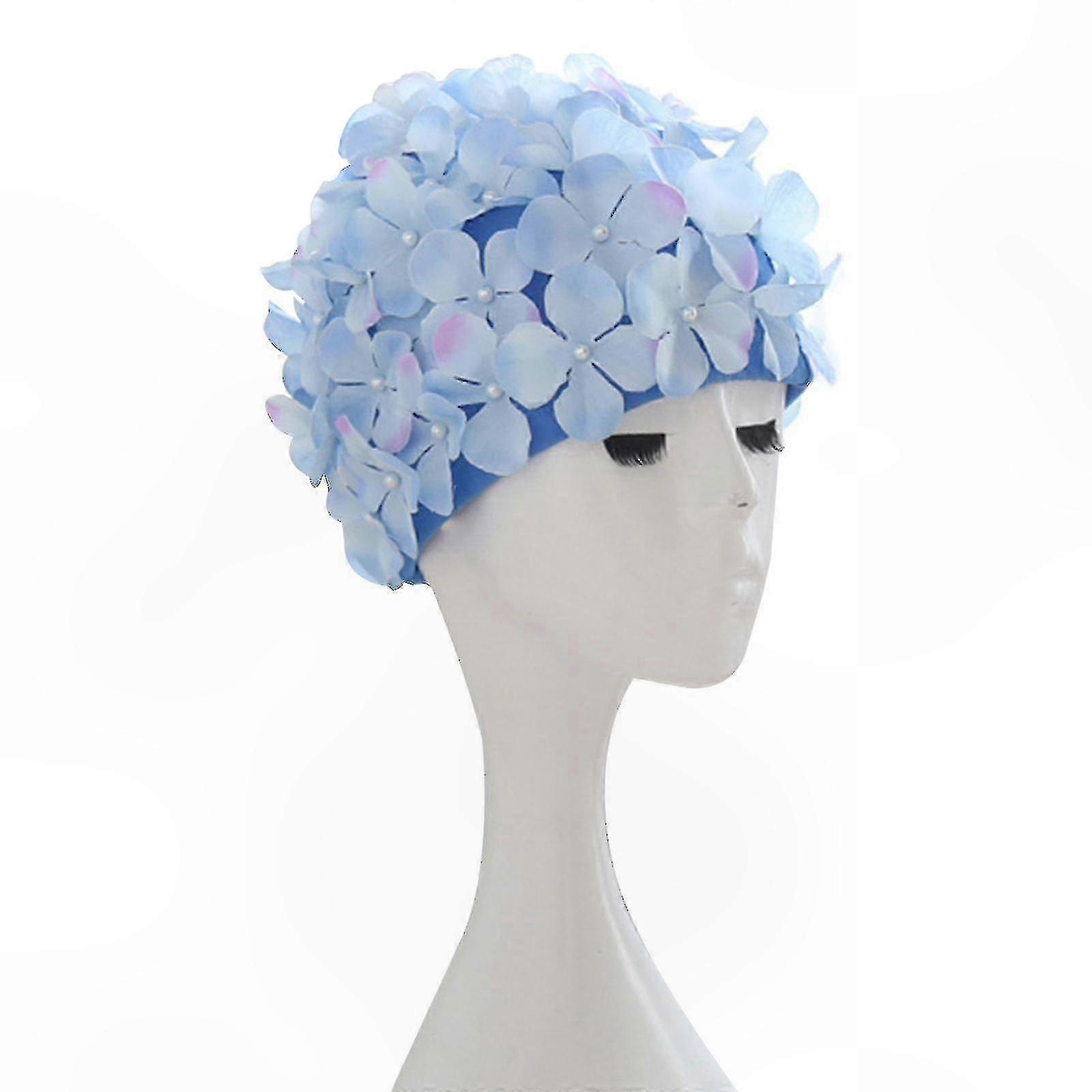 Floral Retro 3D Petal Swim Cap for Women, Ladies Swimming Bathing Hat Accessory