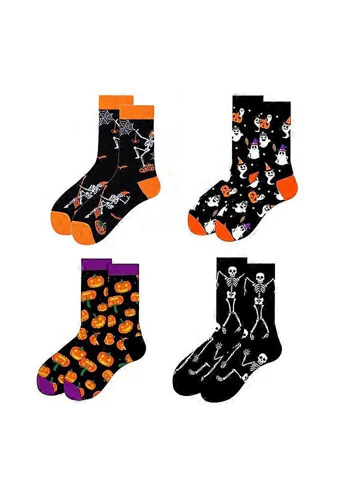 4 Pairs Halloween Socks Crew Cotton Funny Skull Pumpkin Ghost Designs