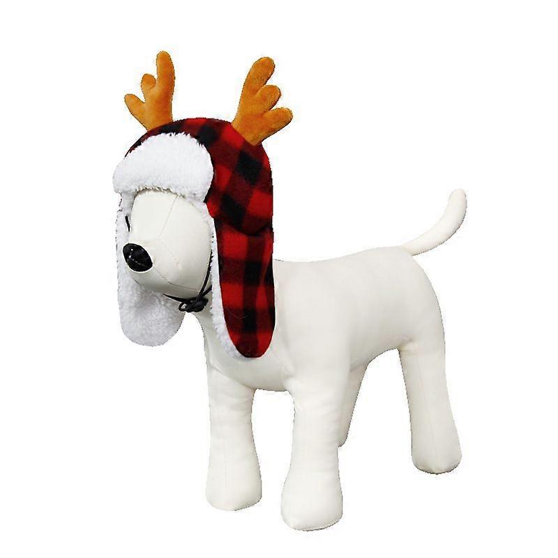 Pet Christmas Hat Dog Holiday Costume Plaid Red Reindeer Antlers Festive Photo Prop Party Decoration